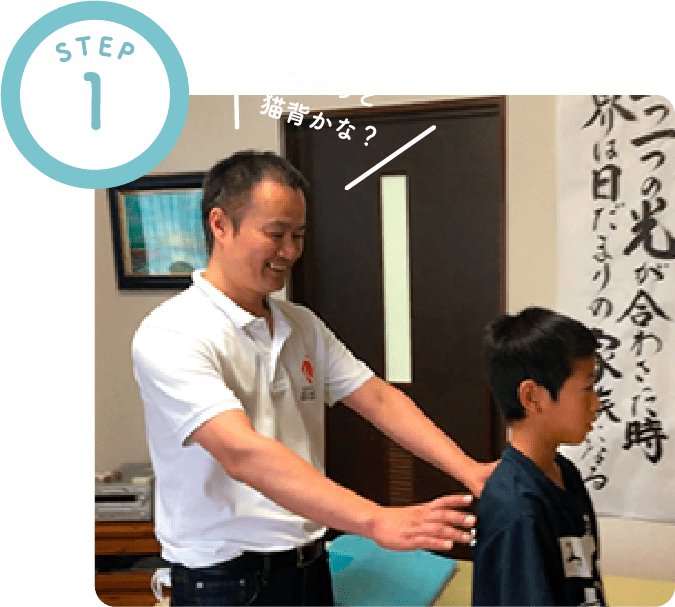 お話を聞いてから痛みのある場所や立ち姿のバランスなどを検査します。