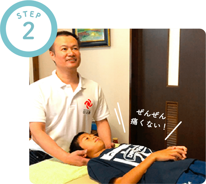 頭痛治療法「日だまりショット」で頭痛の原因を発見します。施術時間はおよそ5〜10分です。